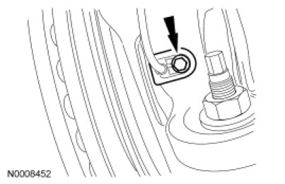 14. Remove and discard the strut-to-wheel knuckle nut and flagbolt.