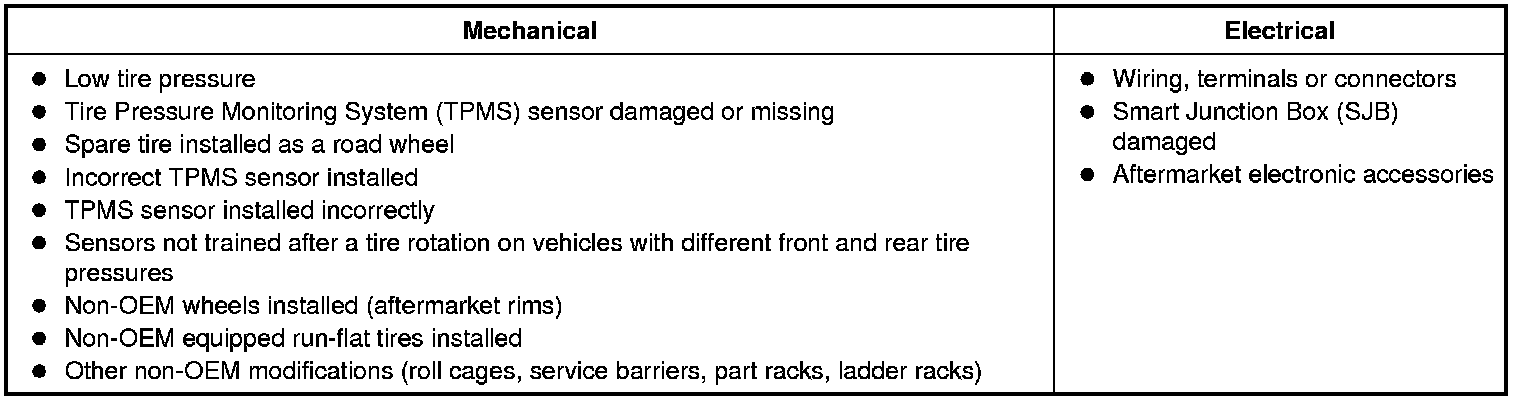 NOTE: Non-OEM modifications made to the vehicle may result in false TPMS warnings.