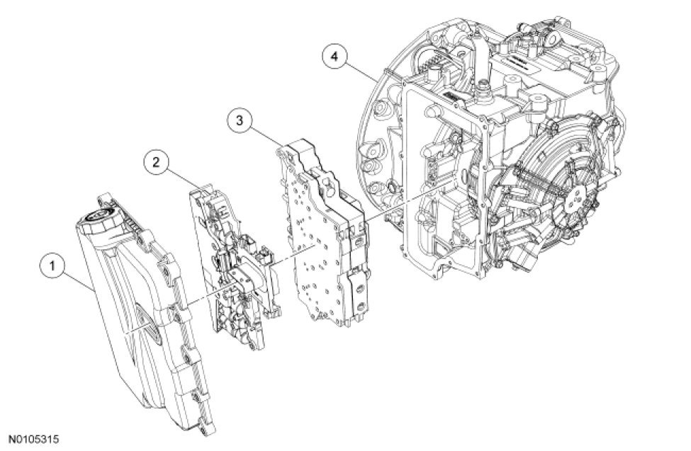 The hydraulic system has a main control assembly. The main control assembly consists of a valve body and a solenoid body. The valve body contains the hydraulic regulator and multiplex shift valves. The solenoid body contains the shift solenoids that control the hydraulic valves. The solenoid body is serviced as an assembly and can not be disassembled. The solenoid body is controlled by the PCM. The PCM has software stored in it specific to the solenoid body currently in the transaxle, called the solenoid body strategy. A new solenoid body strategy must be downloaded into the PCM any time a new solenoid body is installed.