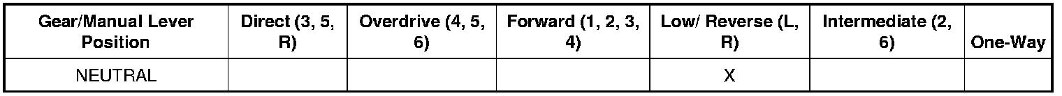 1st Gear Above 5 km/h (3 mph) Clutch Application Chart