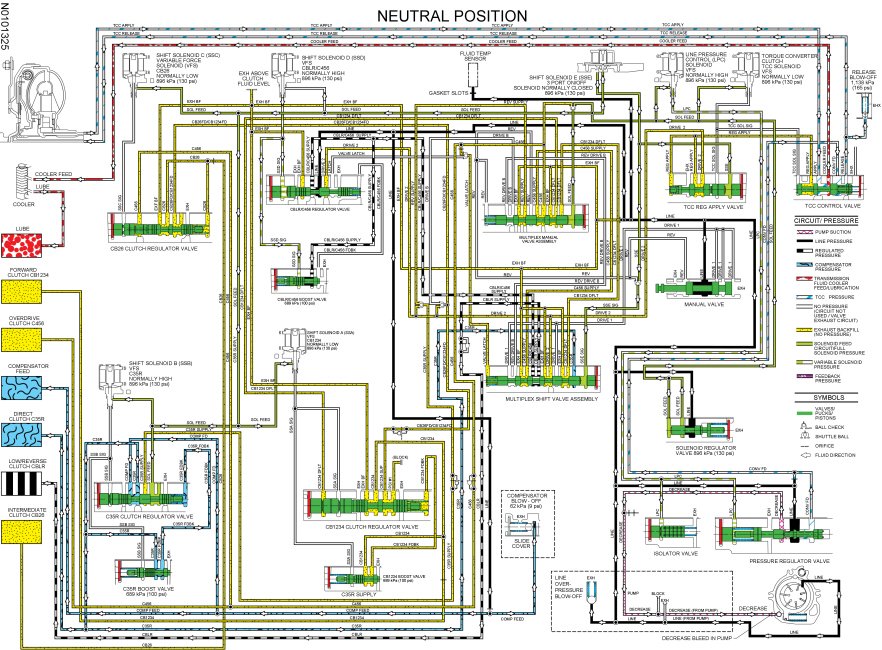 - In the COOLER FEED circuit, transmission fluid flows through the transmission fluid cooler or the thermal bypass valve to the LUBE circuit.