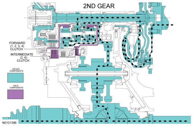 - SSC applies pressure to the intermediate (2, 6) clutch regulator valve to apply the intermediate clutch.