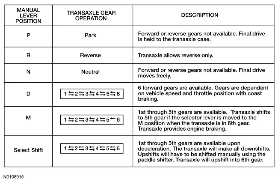 - the driver can manually shift the transaxle to gears 1 through 6 using the steering wheel mounted paddle shifters.
