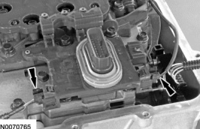 113. NOTICE: Make sure not to pinch the Turbine Shaft Speed (TSS), Output Shaft Speed (OSS) or Transmission Range (TR) sensor wiring harnesses behind the solenoid body when positioning the solenoid body in place.