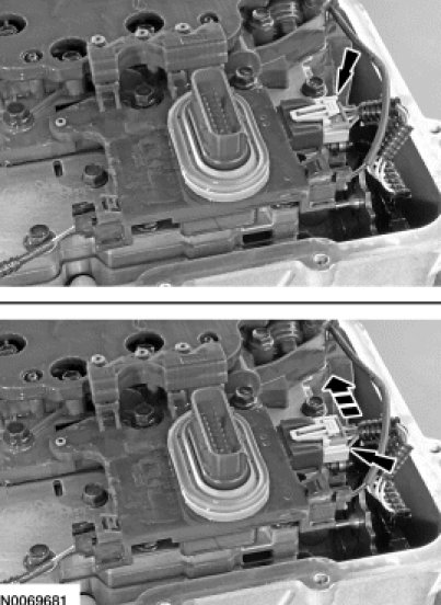 117. Connect the TR sensor electrical connector and slide the lock tab to the LOCK position.