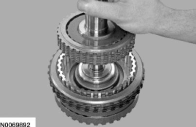24. Clean and inspect the overdrive/direct clutch hub and shaft assembly for damage. Install new, if necessary.