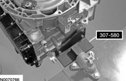 1. Using the Holding Fixture 307-580, install the transaxle onto the bench.