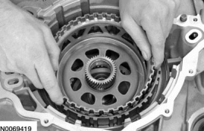 23. Remove the intermediate clutch shell and sun gear assembly.