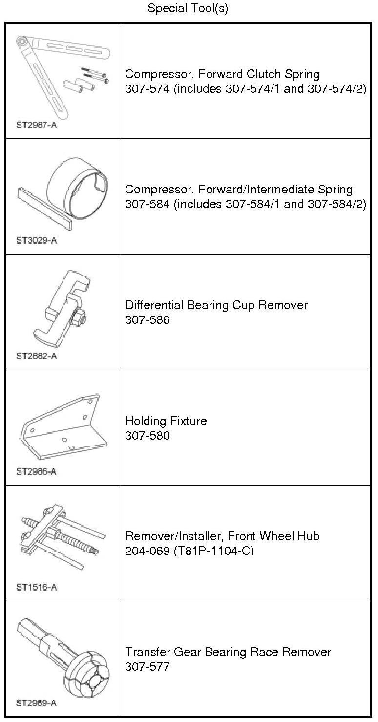 41. Remove Forward Clutch Spring Compressor 307-574 (307-574/1 and 307-574/2) and Forward/Intermediate Spring Compressor 307-584 (307-584/1 and 307-584/2).