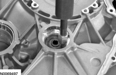 79. Using a suitable tool, remove the halfshaft seal from the torque converter housing.