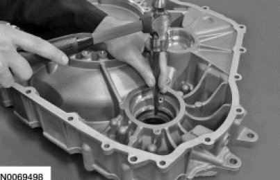 59. NOTICE: If the differential bearing cup is damaged, a new bearing and bearing cup must be installed or excessive noise or transaxle failure may occur.
