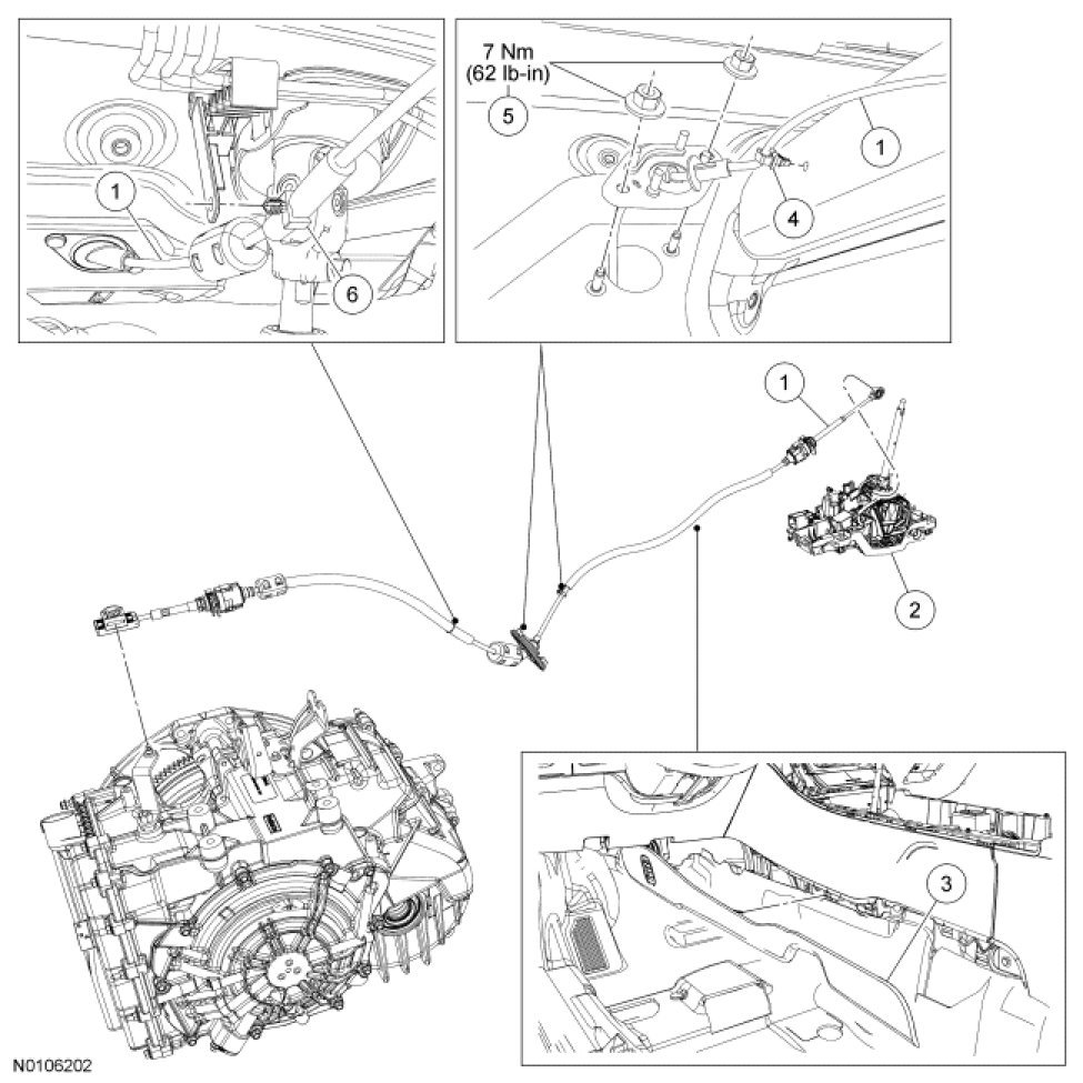 3. Depress the 2 tabs and remove the selector lever cable from the selector lever.