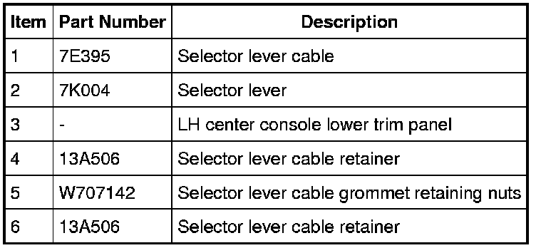 6. Pull the carpet back away from the floor and center console far enough to access the selector lever cable grommet nuts and the retainer.