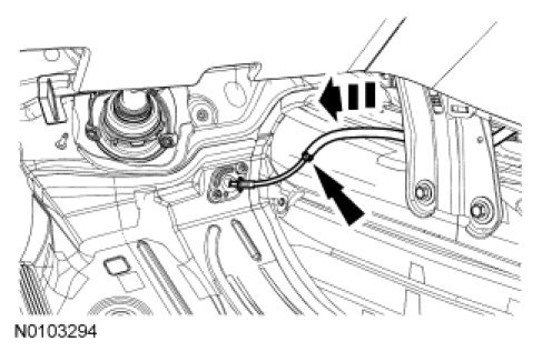 Route the selector lever cable under the heater housing and connect the selector lever cable retainer to the floor.