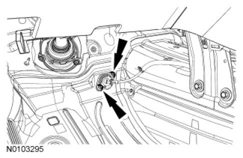 1. Pull the LH center console lower trim panel away from the center console to release the retaining clips.