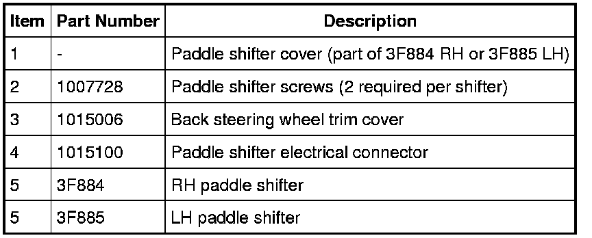 NOTE: This procedure shows removal and installation of the LH paddle shifter. Removal and installation of the RH paddle shifter is similar.