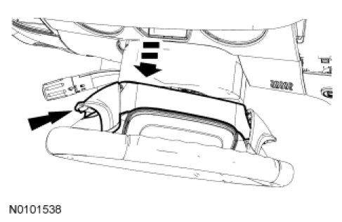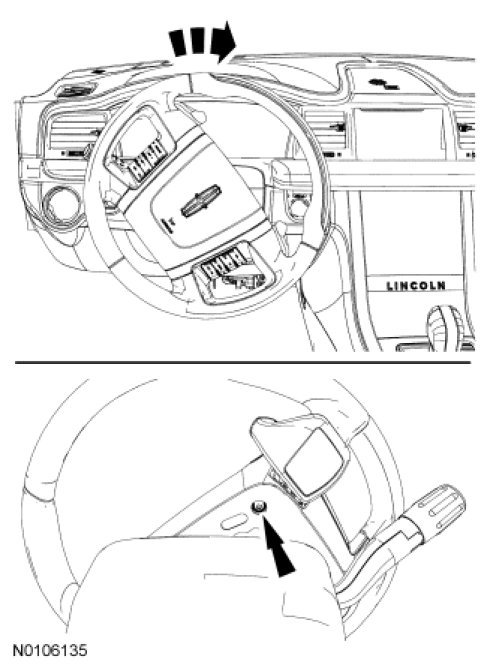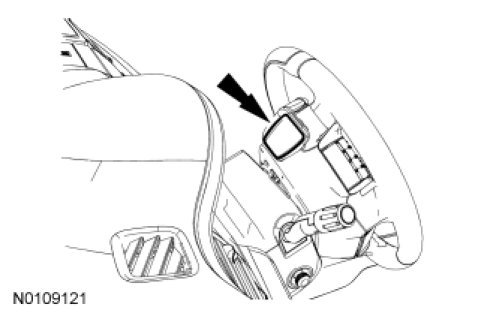 1. NOTE: Steering wheel shown turned to remove the LH paddle shifter. When removing the RH paddle shifter, turn the steering wheel in the opposite direction.