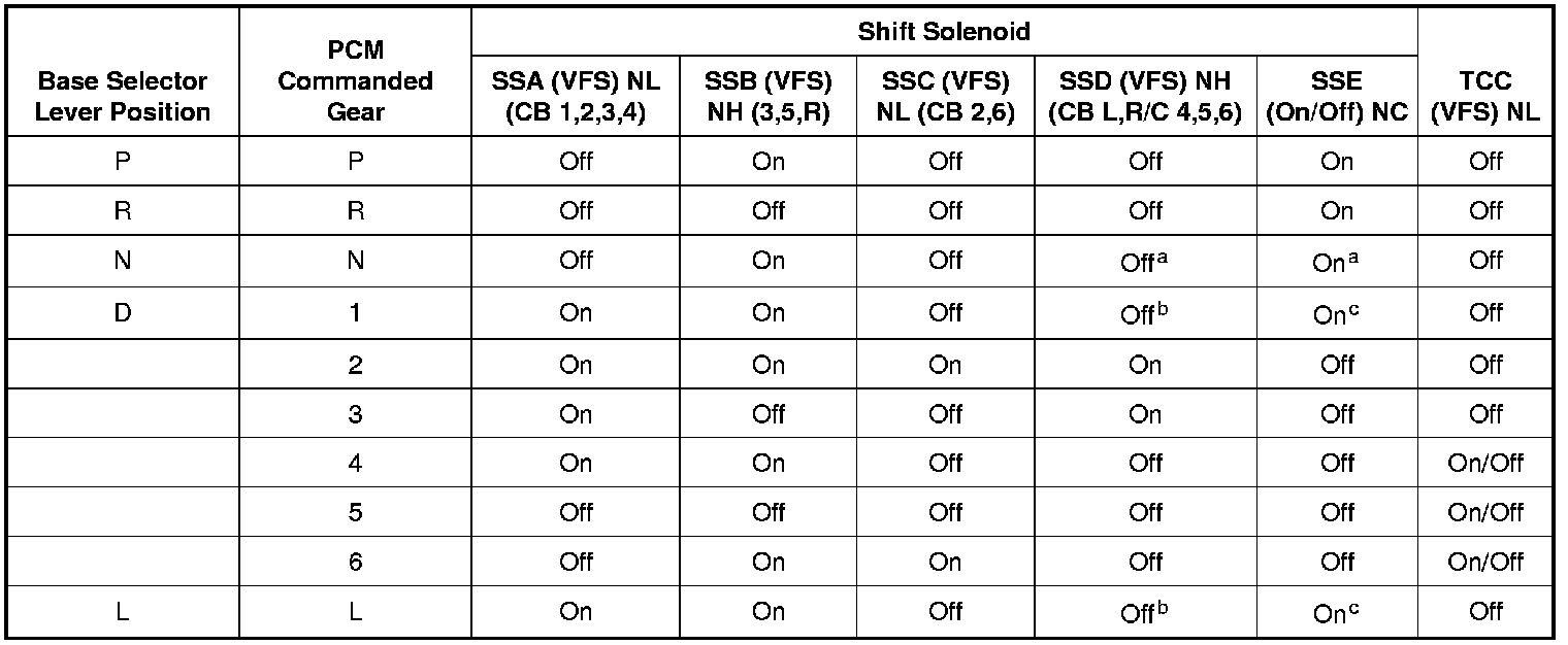 Shift Solenoid Failure Mode Chart Failed ON or Failed OFF