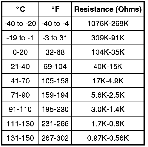 - Compare the resistance value to the following table ranges: