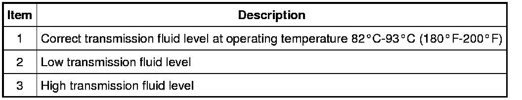The transmission fluid level reading on the transmission fluid level indicator will differ depending on operating and ambient temperatures. The correct reading should be within the normal operating temperature range.