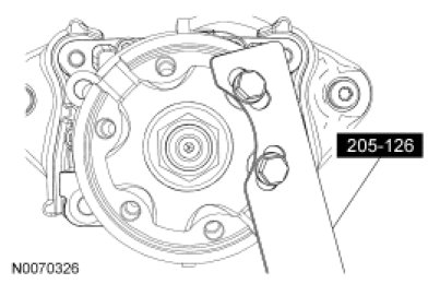 2. Using the Drive Pinion Flange Holding Fixture, hold the pinion flange and remove the nut.