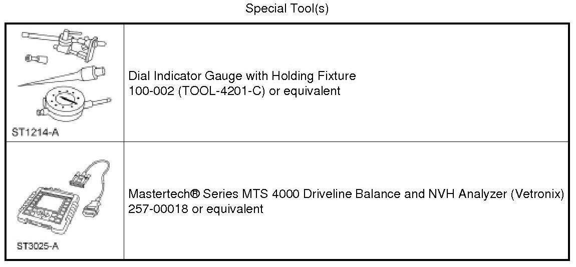 - If the runout is within specification, check for the vibration at the road test speed. If the vibration is still present, balance the driveshaft. For additional information, refer to Driveshaft Balancing in this procedure.