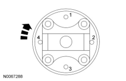 5. Label the tapped holes in the pinion flange numerically, starting at the top hole as 1. Mark the remaining holes 2, 3 and 4. Label in the direction of rotation.