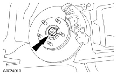 3. Apply the brake to keep the halfshaft from rotating and remove the front wheel hub nut.