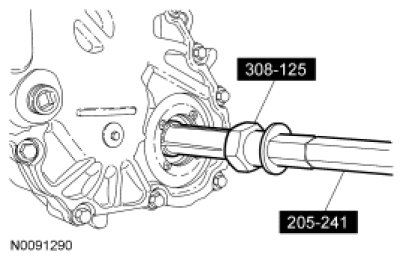 12. Using the Bearing Cup Remover, the extension from the Halfshaft Remover and a suitable slide hammer, remove the intermediate shaft seal, and if equipped, the alignment washer.