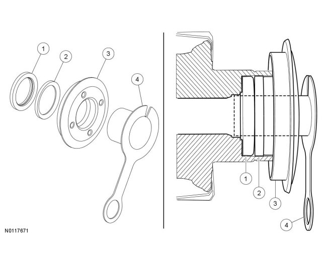 NOTE: The following illustration shows the correct orientation of the seal components when installed in the vehicle.