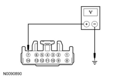 - Measure the voltage between SJB C2280A-7, circuit CBP41 (BU), harness side and ground.