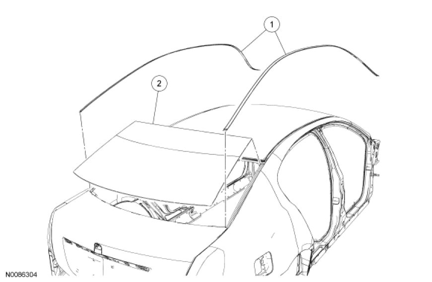 1. Remove the rear parcel shelf and rear assist handles. For additional information, refer to Interior Trim and Ornamentation Service and Repair Service and Repair.