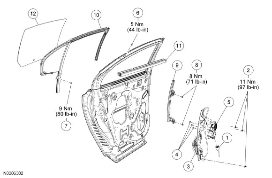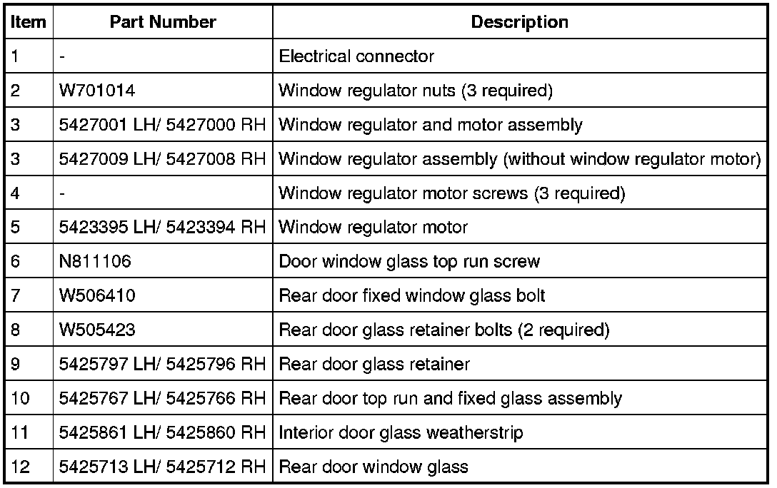Glass, Frames and Mechanisms - Exploded View, Rear Door