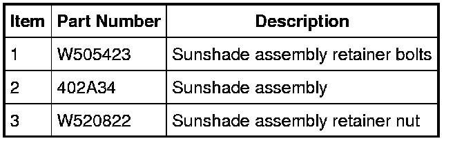 2. Remove the sunshade assembly retainer bolts.