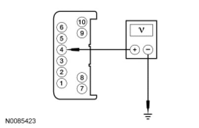 - Measure the voltage between sunshade module C3340-4, circuit CLS10 (GN/BN) and ground with the selector lever in reverse.