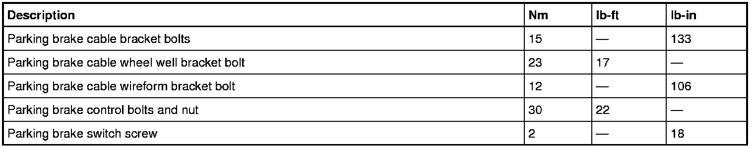 Parking Brake System: Specifications