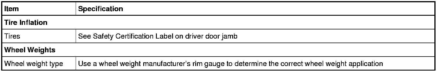 Wheels and Tires: Specifications