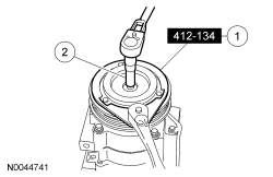 1. Hold the A/C clutch disc and hub with the Compressor Clutch Disc and Hub Holding Fixture.