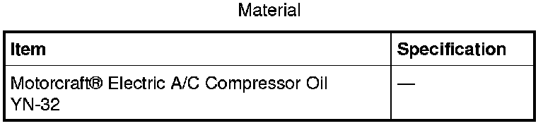 NOTICE: Motorcraft(R) Electric A/C Compressor Oil only must be used as a refrigerant system lubricant for hybrid vehicles. Addition of any oil other than Motorcraft(R) Electric A/C Compressor Oil to the hybrid vehicle refrigerant system will damage the electric Air Conditioning (A/C) compressor and contaminate the refrigerant system.