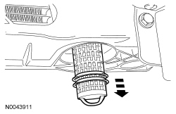 NOTICE: Care must be taken to minimize exposure of the receiver/drier cartridge to outside air. If multiple Air Conditioning (A/C) system components are being removed and installed, the receiver/drier cartridge should be installed last. The new receiver/drier cartridge should not be removed from its packaging until it is ready to be installed. Evacuation of the A/C system must be started as soon as the receiver/drier cartridge is installed. Excessive exposure of the receiver/drier cartridge to outside air will result in moisture contamination of the receiver/drier cartridge desiccant.
