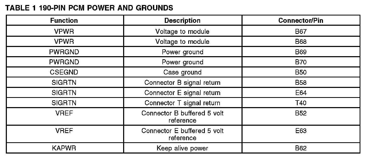 Powertrain Control Module (PCM) Power and Ground Signals