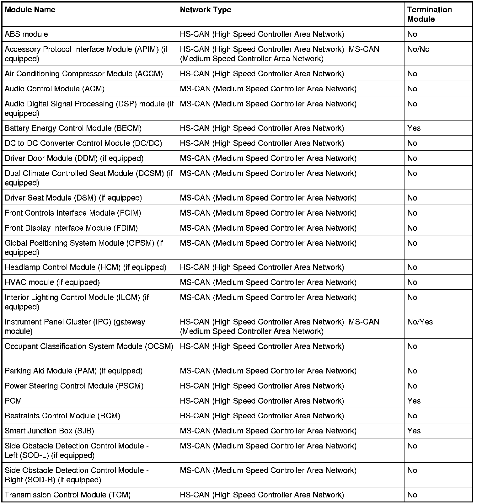 The IPC (Instrument Panel Cluster) is the gateway module, translating messages on the HS-CAN (High Speed Controller Area Network) to MS-CAN (Medium Speed Controller Area Network) and vice versa. This allows a message to be distributed throughout both networks. The IPC (Instrument Panel Cluster) is the only module on this vehicle that has this ability.