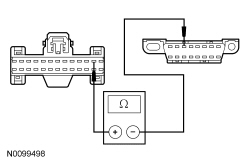- Measure the resistance between the SJB (Smart Junction Box) C2280B-37, circuit VDB06 (GY/OG), harness side and the DLC (Data Link Connector) C251-3, circuit VDB06 (GY/OG), harness side.