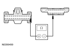 - Measure the resistance between the DLC (Data Link Connector) C251-3, circuit VDB06 (GY/OG), harness side and the DLC (Data Link Connector) C251-11, circuit VDB07 (VT/OG), harness side.