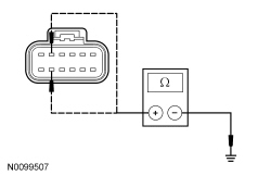 - For 3.5L gasoline, measure the resistance between the TCM (Transmission Control Module) C1533-9, circuit GD120 (BK/GN), harness side and ground.