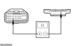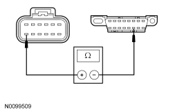 - Measure the resistance between the TCM (Transmission Control Module) C1533-14, circuit VDB04 (WH/BU), harness side and the DLC (Data Link Connector) C251-6, circuit VDB04 (WH/BU), harness side.