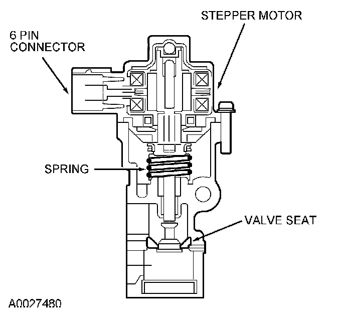 The TAC motor is a DC motor controlled by the PCM (requires two wires). The motor housing is integrated into the main housing. An internal spring is used to return the throttle plate to a default position. The default position is typically a throttle angle of 7 to 8 degrees from the hard stop angle. The closed throttle plate hard stop is used to prevent the throttle from binding in the bore. This hard stop setting is not adjustable and is set to result in less airflow than the minimum engine airflow required at idle. For additional information, refer to the Torque-Based Electronic Throttle Control (ETC).