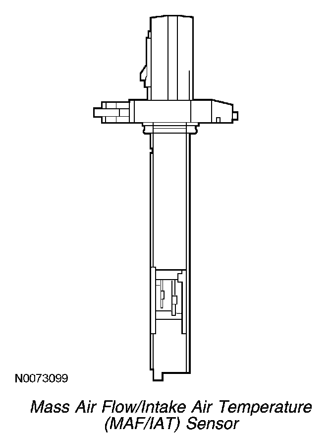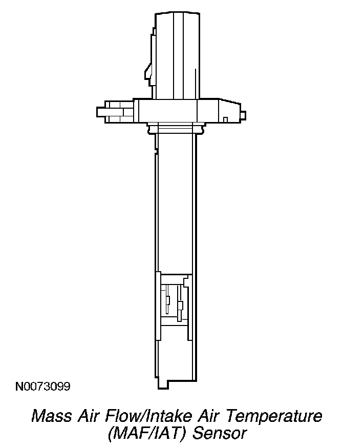 The IAT sensor provides air temperature information to the PCM. The PCM uses the air temperature information as a correction factor in the calculation of fuel, and ignition timing.