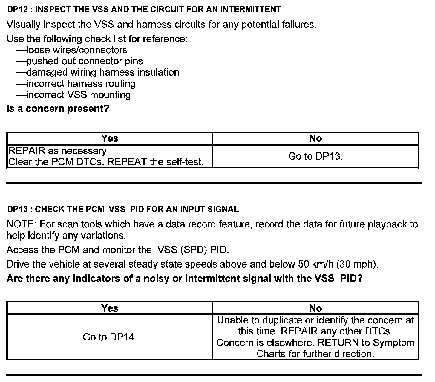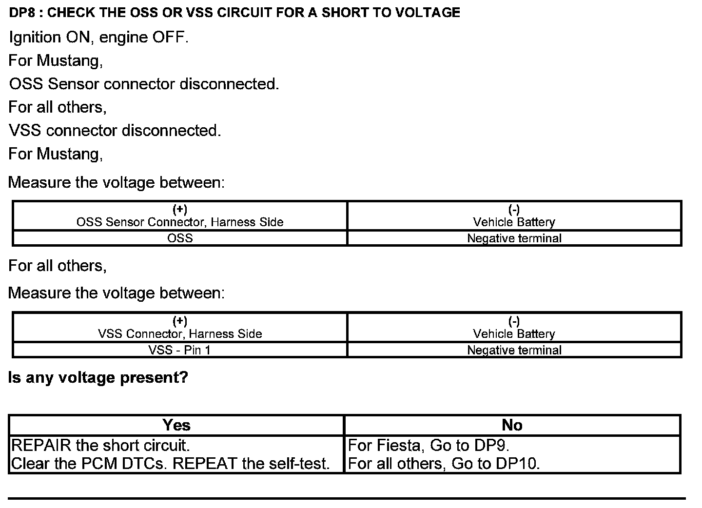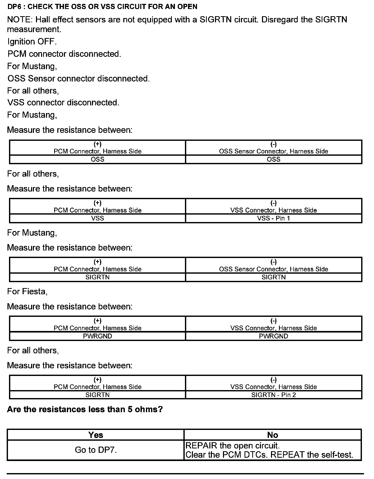 Test DP: Output Shaft Speed (OSS) Sensor/Vehicle Speed Sensor (VSS)
