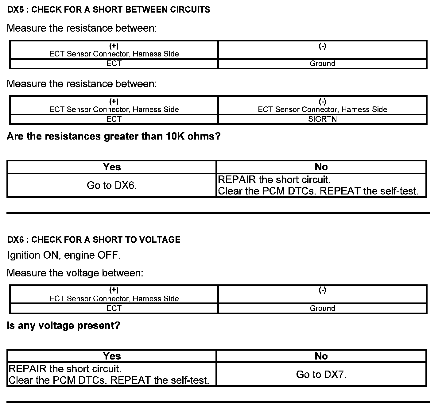 Test DX: Engine Coolant Temperature (ECT) Sensor
